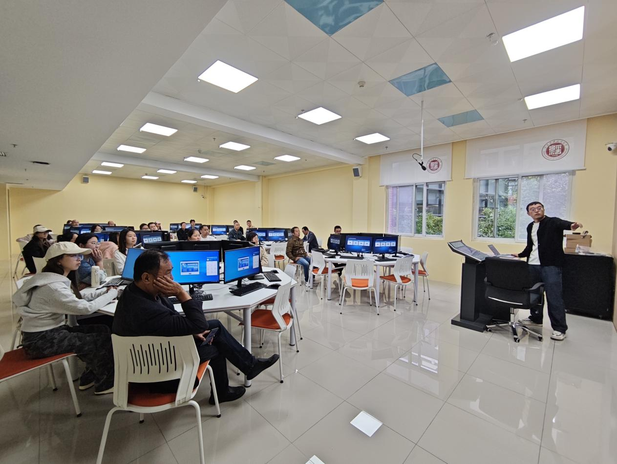 培训围绕新建实验室中各类智能教学设备的操作与使用展开,内容包括网络中控设备、智慧控制台、光能黑板(智慧大屏)、云桌面(数字教室)等的具体操作方法及日常使用注意事项。讲解员通过现场演示和互动答疑,帮助教师们快速掌握设备使用技巧,增强实际应用能力。培训共安排了三个不同时间段进行,教师可根据课程安排自由选择参与时段。